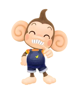 AiAi is a short brown monkey with large ears with a swirly pattern in the middle of them, and has the fur atop his head in a quiff. His eyes are Pie-eyed style similar to early cartoon characters. He always wears an orange t-shirt with the letter 'A' in white writing on it and occasionally wears a sky blue backpack.