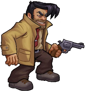 Onishima initially appears in the very first level of Jet Set Radio, where he is called in after the player sprays a certain number of tags, where he'll chase the player and fire his revolver at them.