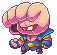 In Alex Kidd in Miracle World DX, Chokkina begins stomping the ground, summoning volcanic meteors from the sky, in an attempt to burn the city and grasslands down. He also will fire his energy blasts, and has the ability to teleport, making him a trickier opponent than Gooseka. Once again, Alex must dodge Chokkina's projectiles and punch him until he is defeated, and turned into a meal for Alex, this time for good.