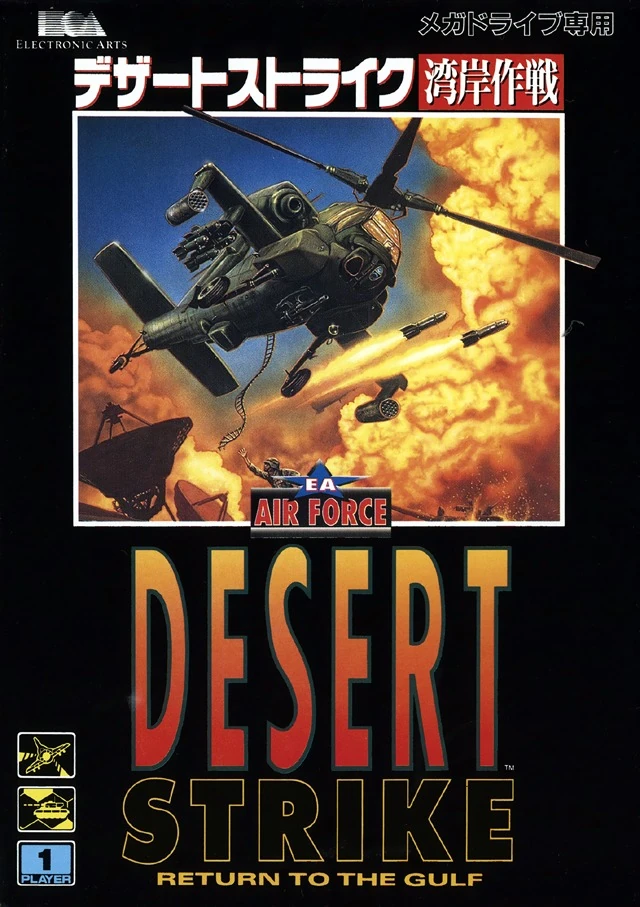Desert Strike: Return to the Gulf, or simply Desert Strike, is a 1992 shoot 'em up game developed by Electronic Arts for the Sega Mega Drive, the Game Gear and the Master System. Players, fighting for the United States, control an Apache helicopter to take down the crazed Middle Eastern dictator, General Kilbaba, while managing fuel, ammunition, destroying enemy forces and rescuing hostages and fellow soldiers.