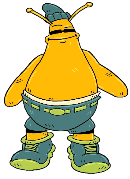 Earl is an obese orange extraterrisal hailing from the Planet Funkotron. He has two antenna at the top his head and wears sneakers, sunglasses and a pair of polka-dotted trunks (which occasionally fall off). In recent appearance, he now wears a ski hat, a pair of blue jean shorts, and even aquired a belt with his first intial engraved! In Mission to Earth, he had a tattoo on his upper back, but has since been removed.