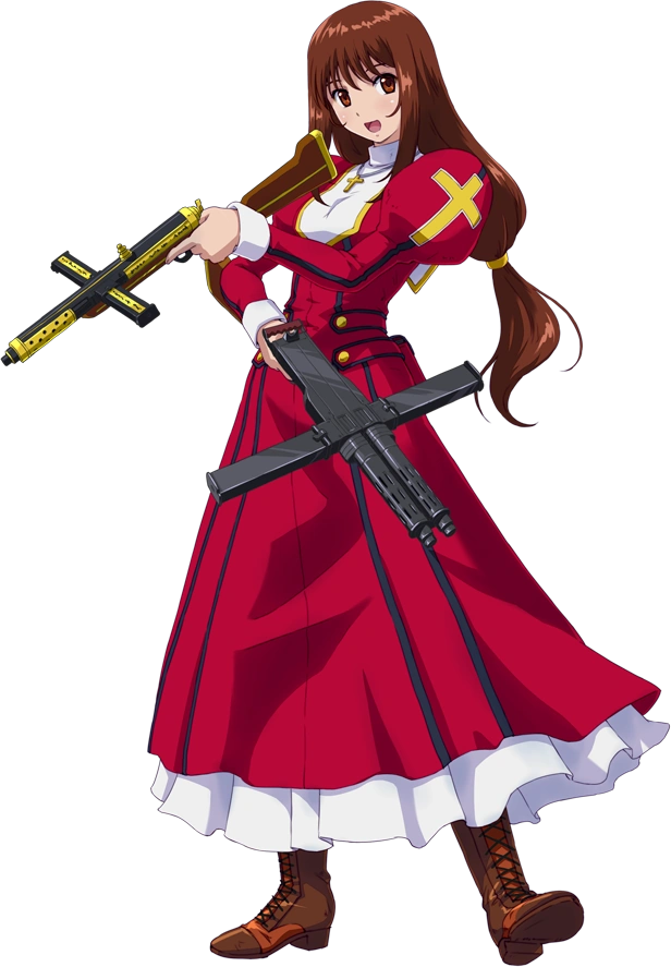 She has a great interest in Japan and its culture, although her knowledge is often incorrect. She carries a cross-shaped machine gun named "Raphael" concealed inside her dress.