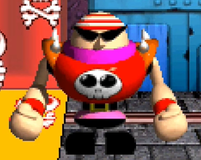 Hercules’ boss battle is a duel of strength to determine who can crush the other with a steel wall, which has been placed between him and the player. The player must rapidly tap a button (any button will do) to push Hercules into the flashing zone within 12 seconds; if successful, the adventurers will crush Hercules with the wall, flattening him to a paper-thin state. If the player runs out of time or gets crushed, they lose a life and the battle restarts with additional time added. After the battle, Hercules escapes in his monster truck, initiating the bonus stage.