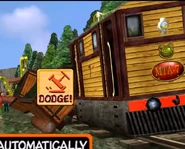 The truck is powered by two levers mounted on the front of the machine. During gameplay, the machine adds resistance to the levers, which must be pumped up and down as far and as fast as possible, making the game a test of physical endurance. Each player has a "pumping meter" on their side of the screen, which fills as the player pumps the lever. Pumping the levers as fully as possible makes the truck move faster, while weaker pumps slow it down. When Alma and Roy must escape something that is coming down the track behind them, or have caught sight of the villains and need to catch up to them, the players are prompted to pump faster.