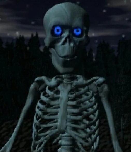 Mr. Bones is your basic human skeleton, with two notable features: One being the gap in-between his teeth and the other are his glowing blue eyes. These eyes are powered by Da'Goulian's skeletal magnetism (or "skeletism").